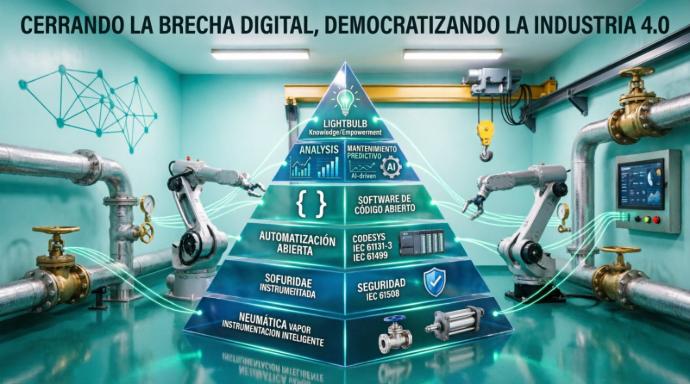 Democratizar el acceso a la Industria 4.0 en Latinoamérica , proporcionando un ecosistema tecnológico integral que elimina las barreras de inversión y complejidad técnica. Nos comprometemos a potenciar la eficiencia operativa de nuestros clientes mediante soluciones abiertas, mantenimiento predictivo y formación especializada, impulsando la transformación digital de la industria regional de forma sostenible y rentable.