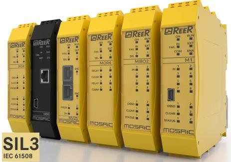 Controlan todas las funciones de seguridad de una planta o una máquina. Modulares y Expandibles, certificados SIL3, SILCL 3 de acuerdo a IEC 61508 - IEC 62061 / PL e - Cat. 4 de acuerdo ISO 13849-1.
